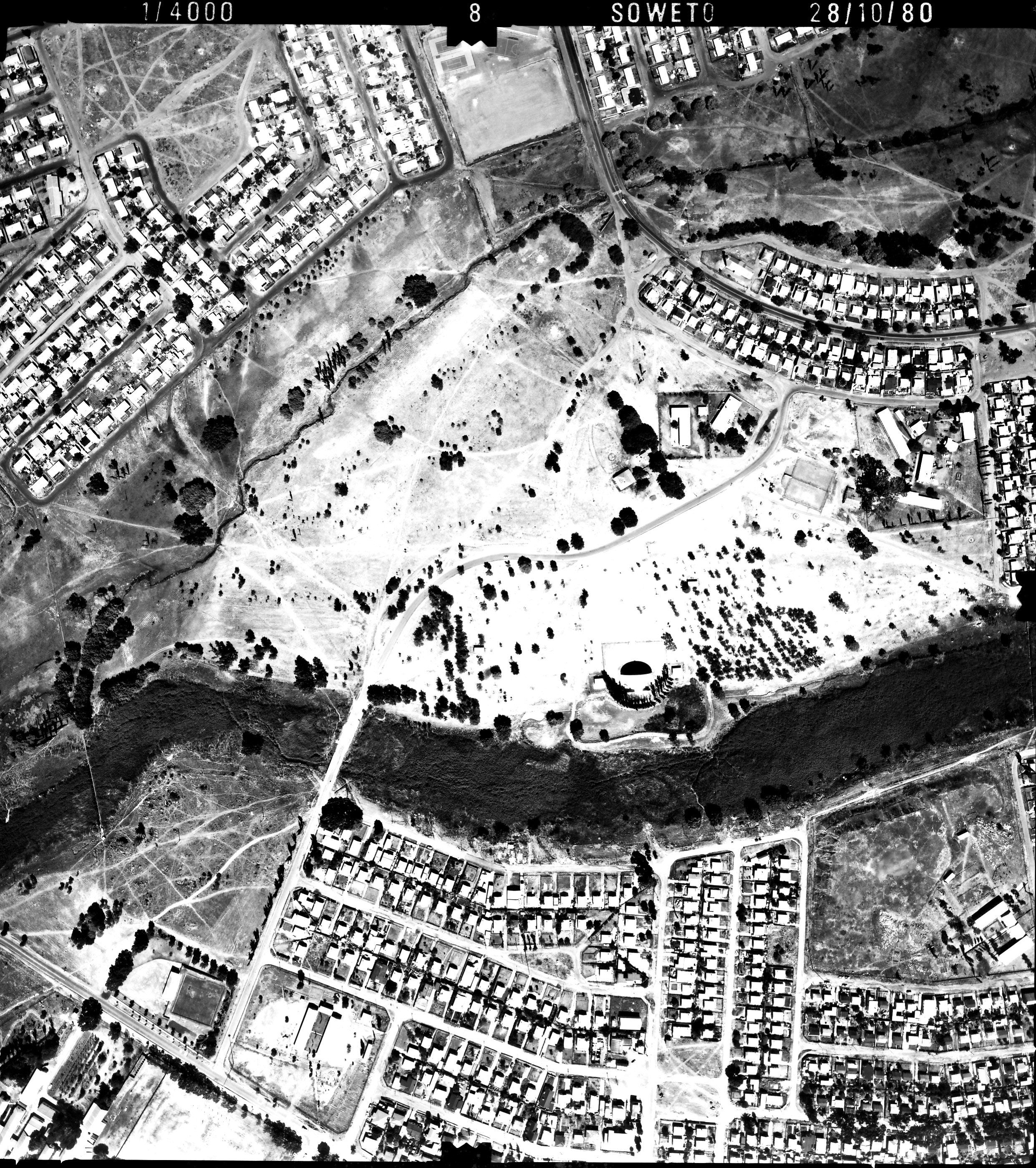 Aerial view of Mofolo Park on 28th October, 1980 - 1/4000 - please click on image for large view showing Mofolo Park and Five Roses Bowl built in 1976 (burnt down in 2012)!