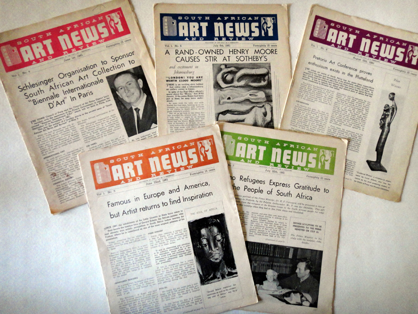 “Art and Art Education News from Southern Africa” - files covering the period 1960s to 2014 under the Categories: S.A. Art News General, Tribal, African Music, Schools + Art Centres, Crafts, Universities, Museums, Other Public Collections, Auction News S.A., Galleries