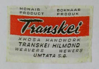 As from the end of 1965, Gallery 101, Johannesburg, offered over many years in their ground-floor and basement section the beautiful mohair curtaining material as well as rugs, cushions and runners made by Xhosa women working at “Transkei Hilmond Weavers” near Umtata.