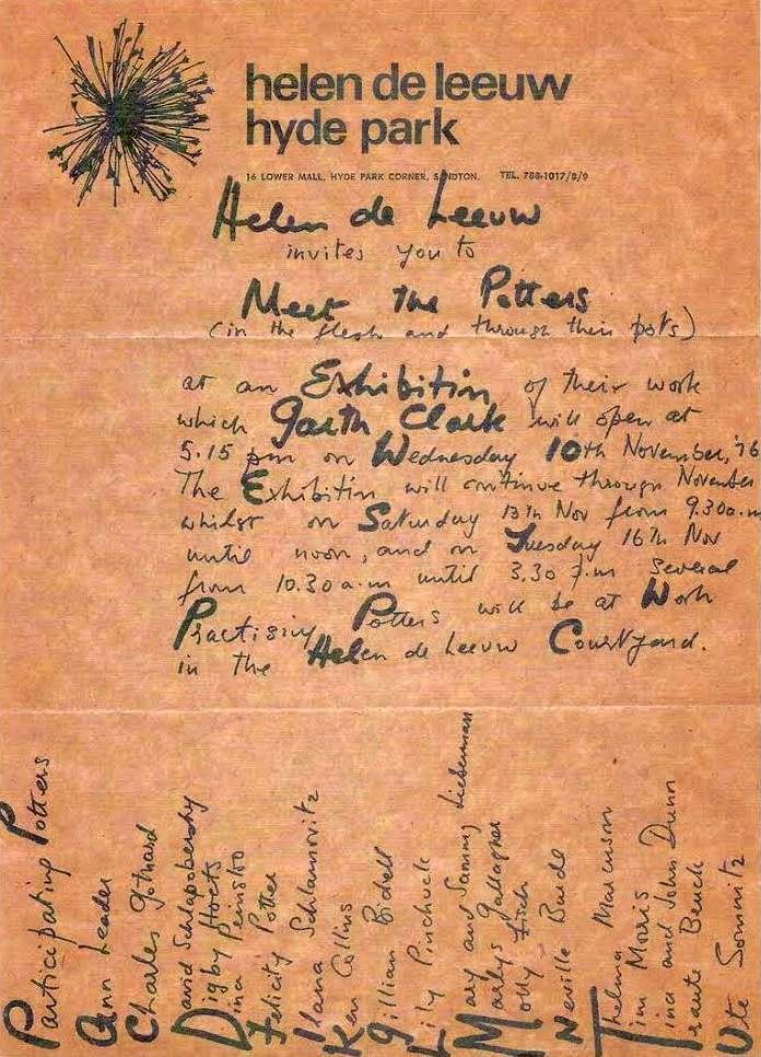 On 10th November, 1976, the exhibition "Meet the Potters" was opened in the Hyde Park Corner Shopping Centre's Court Yard.